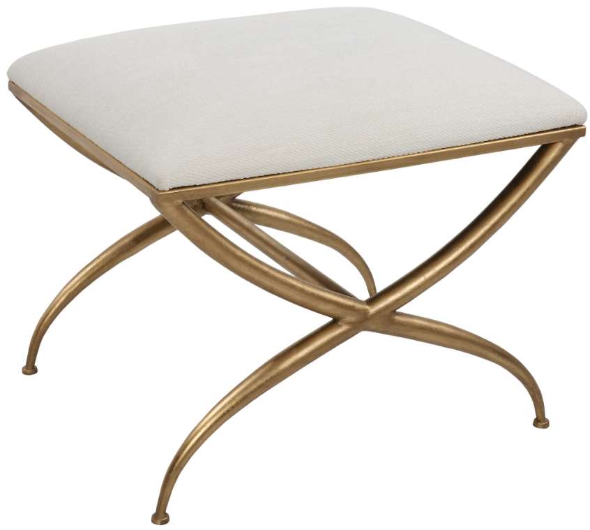 Classic yet stylish, this small bench features a curved iron frame finished in an elegant gold leaf. The cushioned top is upholstered in a crisp white fabric, doubling as a comfortable seat or footrest.Read More