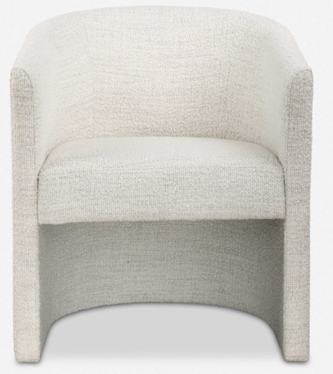 Designed with your comfort in mind, the Encompass dining chair features a barrel back shape that allows for ultimate leisure at the table. Upholstered in a textured white boucle with a toxin-free, eco friendly treatment to help resist water based stains. Seat height is 19".Read More