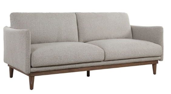 Relax in the sink-in comfort of the Freefall sofa. Featuring clean modern lines and resting on a solid oak base in walnut with gray ceruse. High density foam cushions are dacron wrapped and upholstered in a warm toasty beige polyester boucle. Seat height is 18".Read More