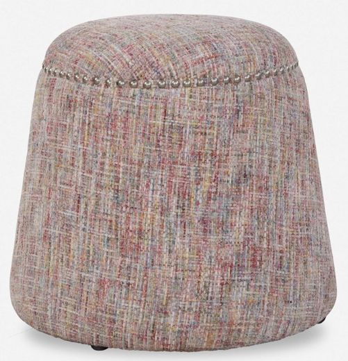 This plush ottoman is covered in a playful confetti chenille fabric accented with brushed nickel nail head details. Versatile and stylish, this piece can be used as a seat or footrest, grouped together or as a singular accent piece.Read More
