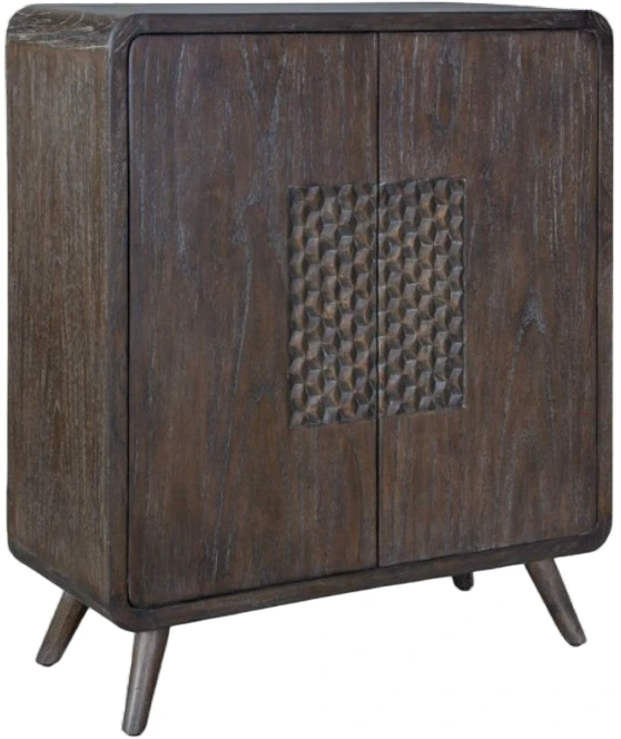 This exquisitely crafted two-door cabinet seamlessly combines rustic charm with mid-century modern design. It showcases a rich, weathered Mindi grain finish and rests on tapered legs, enhancing its vintage appeal.Read More