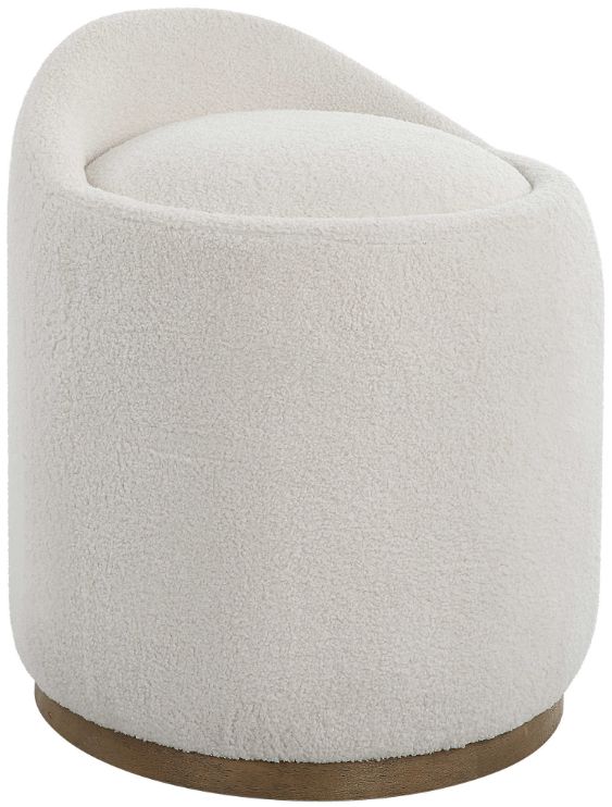 This low back swivel stool serves as conversational dining seating or as extra living room accents. Resting on a solid wood swivel base and upholstered in environmentally friendly 100% recycled polyester reminiscent of natural faux sheepskin.Read More